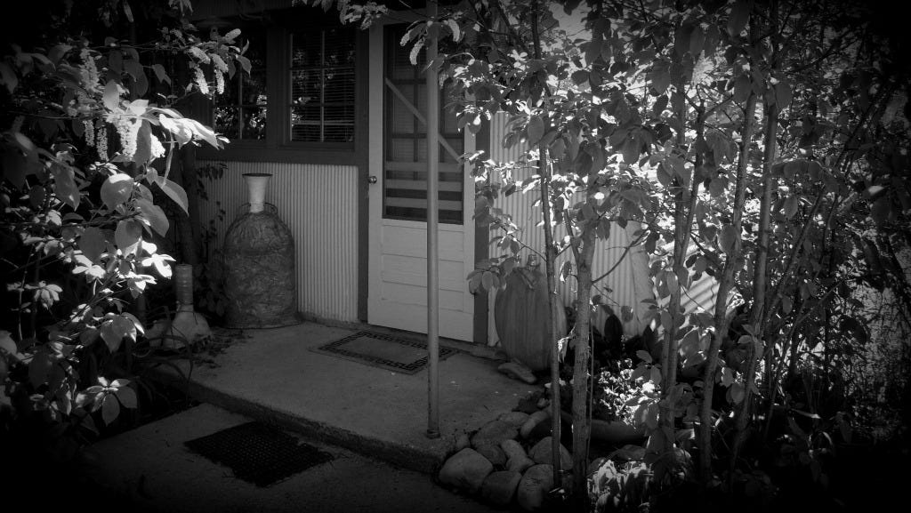We had stumbled upon a unique find. A old hanger shaped building that was once a cafe at a airport across the large valley. It's name was Aero Cafe. but that was before the uprising. It was saved from destruction and moved across the valley to these wonderful lands. The cafe was turned into a living space and now a grove of trees has grown around it giving the appearance of a hobbit house. The visit ended well and as we stood there listening to the babbling brook we said yes, we want to live here.