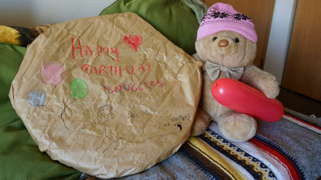 I was sick on my birthday so the entire event was rescheduled. And since I was sick I did not get the email about when it was rescheduled to. Then one day I got ambushed by the entire clan. I knew something was up when an art project irrupted in the spare bedroom in which I was banned from.