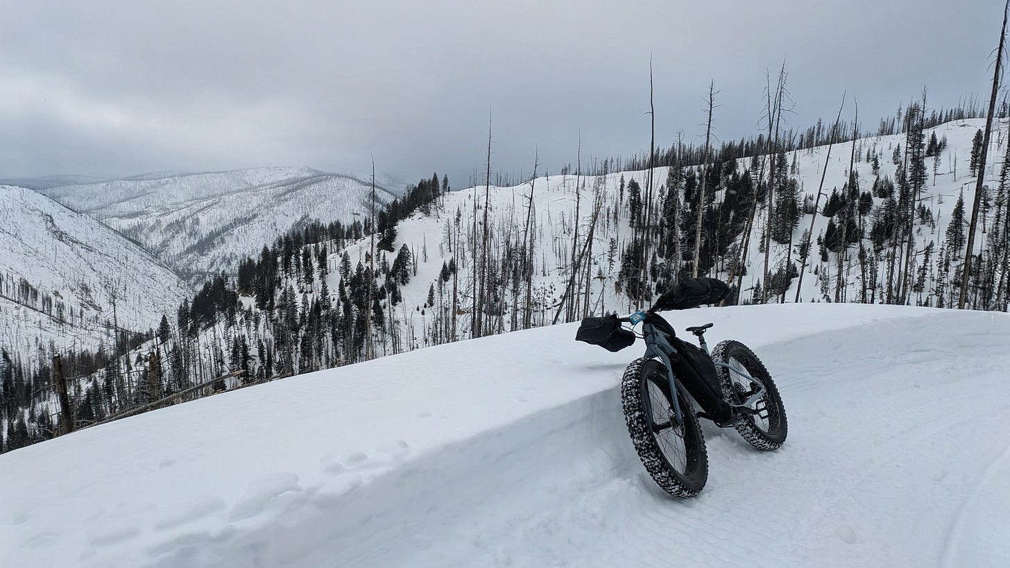 Turns out it was one of those days. Twenty miles. Nearly to the pass. Perfect snow, the kind that makes you forget effort exists. Quiet, steady, honest riding. No drama, no bargaining. Just forward motion and a growing affection for wide tires and winter silence. I love fat biking now. The only problem is simple and eternal. We are going to have to go find more snow.