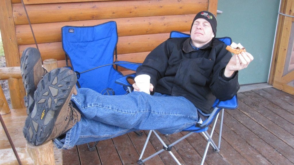 The run into town for replacement parts turned into a taste of the local culinary fairs. Soon the night was upon us and we returned to camp to sit next to a crackling fire. Sleep deprivation caught up to me and I barely made it into the cabin before I completely passed out on the cot.