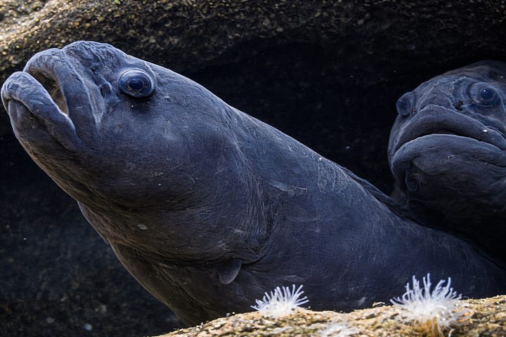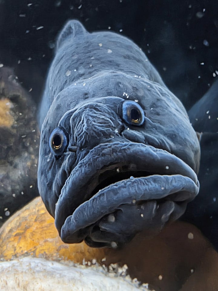 Mo and I are walking along in the Oregon Coast Aquarium and instead of looking through the glass I suddenly realized I was looking in a mirror. Those wolf eels with their saggy jowls and perpetual frown, hunched in their rocky caves like they’ve given up on small talk forever. The grouper hanging motionless, mouth agape, looking like they just remembered something embarrassing from 1987. Every fish tank became a reflection of my own face when I think nobody’s watching.
