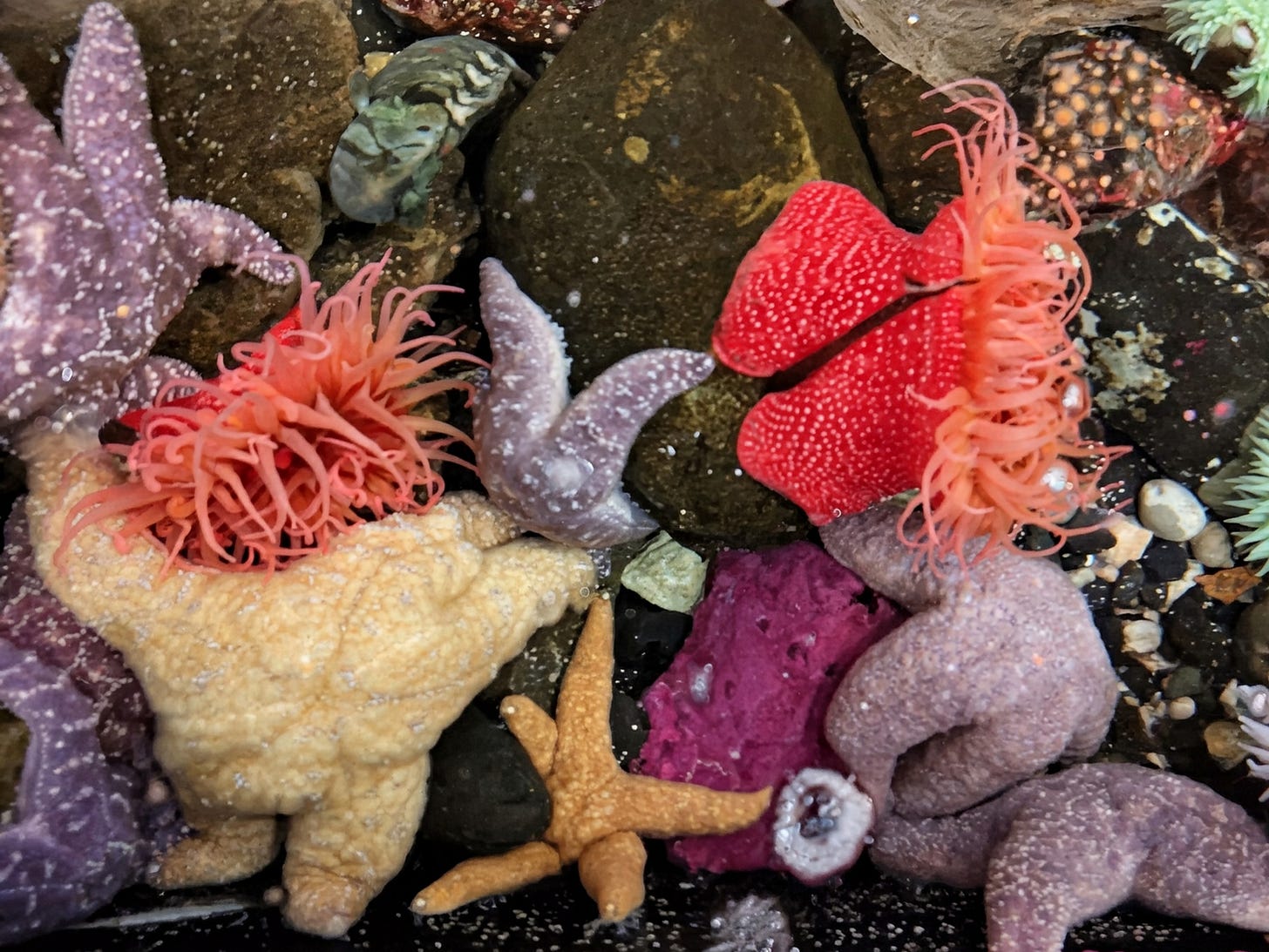 But then we hit the tide pool exhibit and everything changed. Vibrant sea anemones waving their tentacles like they’re at some underwater rave. Orange and purple starfish draped over rocks without apology. A copper rockfish sporting patterns so bold it looked like it was painted by someone who’d never heard the word “subtle.”
