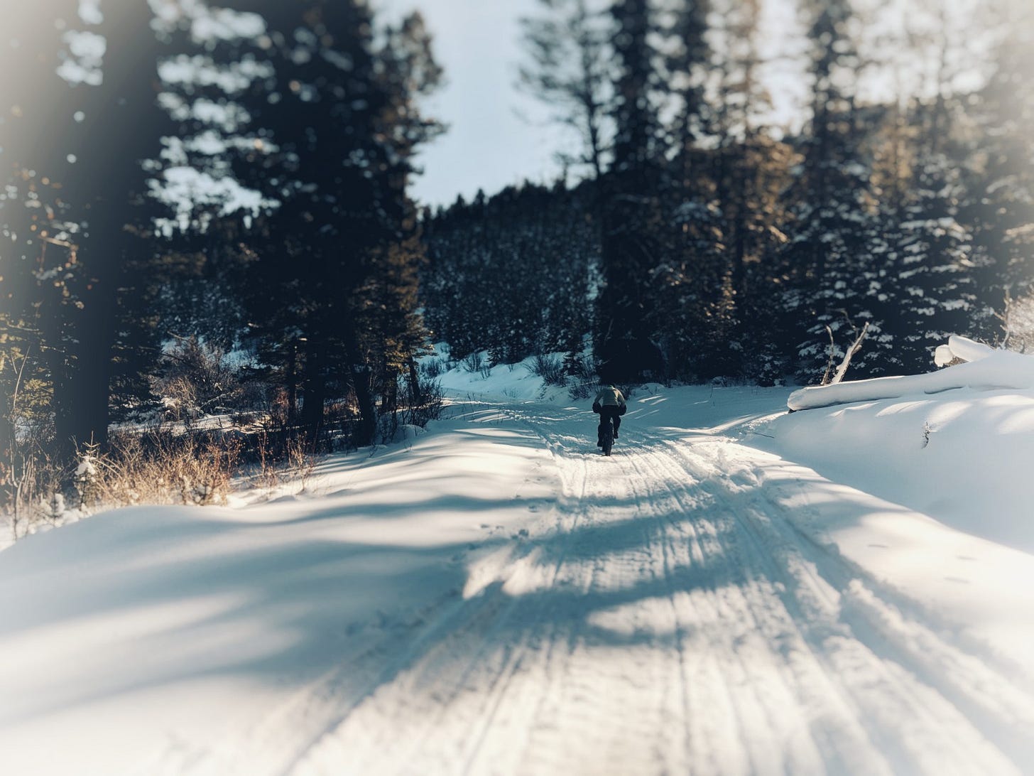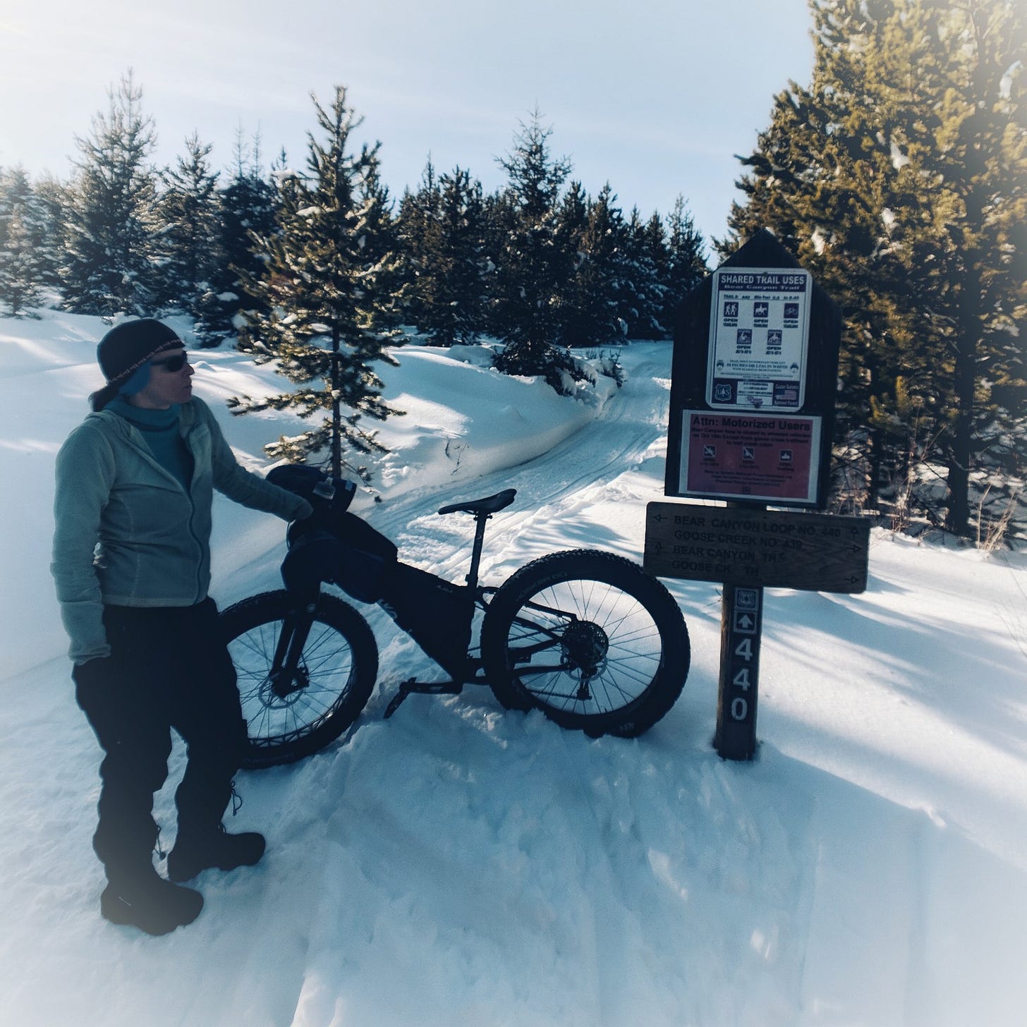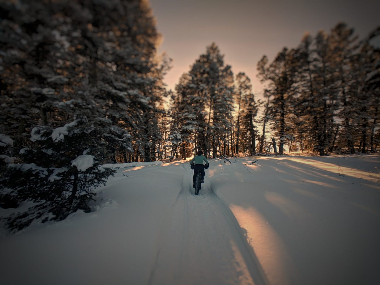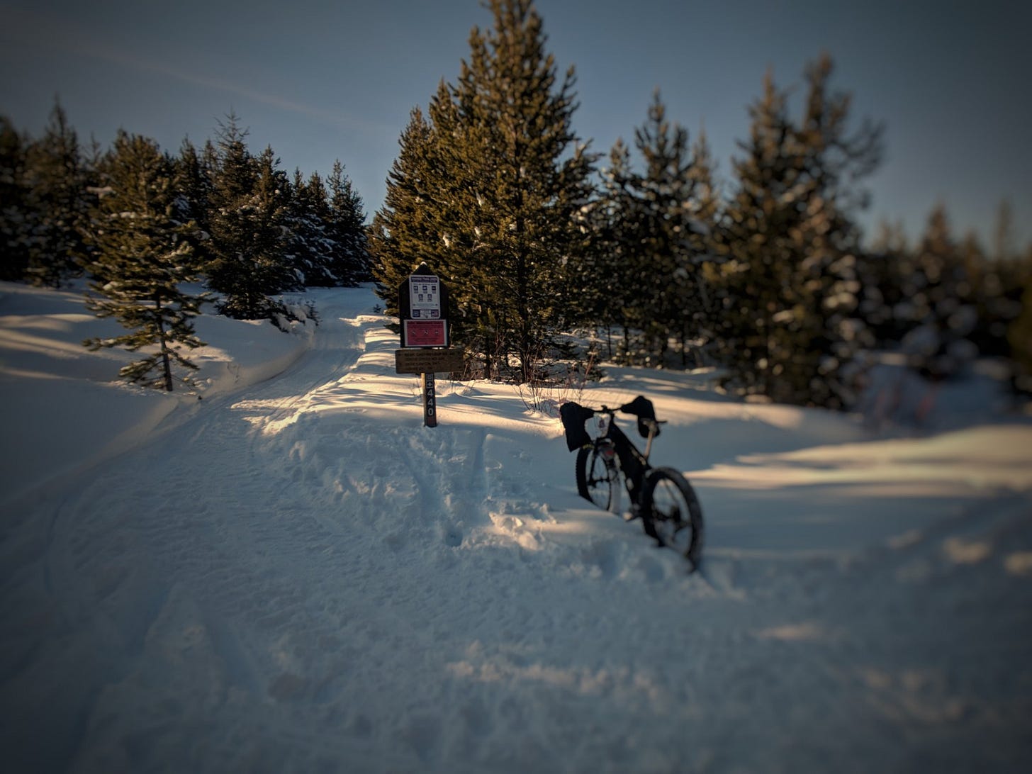 We found perfect conditions. The snowmobile and ski traffic was pretty heavy and combined with the thaw and freeze recently it was set up perfectly. Didn't even need to let a bunch of air out of the tires. I forgot to put my phone in airplane mode so it made this comforting sound. I so wanted to look at it to see whats up but instead just turned it off. The winter day again enveloped me.