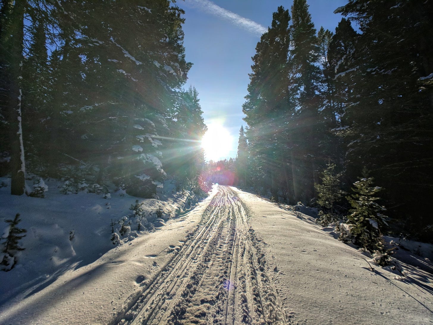 Into the sun on Trail Creek Road