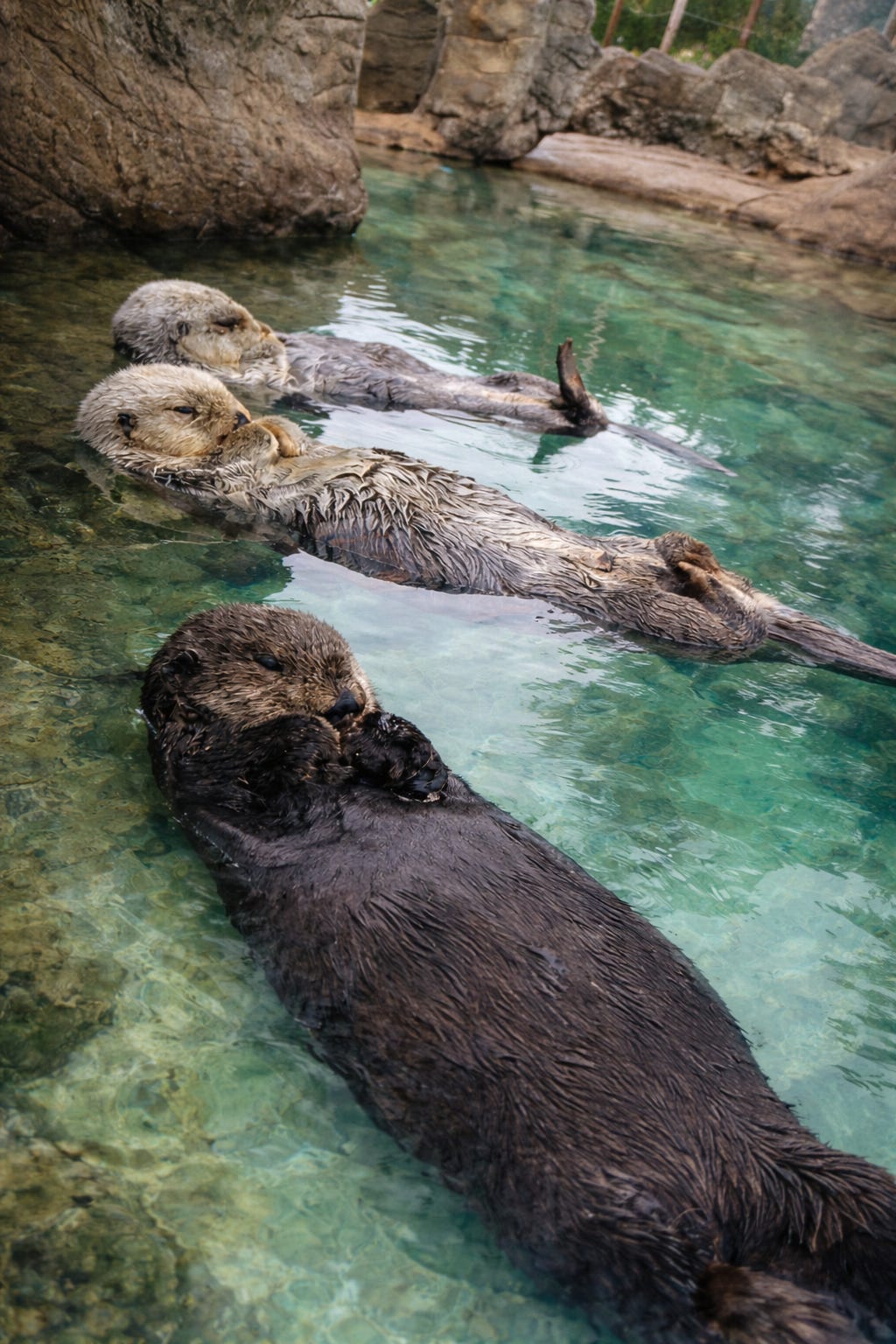 Standing guard with the otters at Newport Aquarium felt like the most natural thing in the world. Three furry philosophers floating on their backs, eyes half-closed in perfect contentment while I kept watch. They had the whole relaxation thing figured out. No stress about stolen bikes or territorial tourists. Just pure, floating zen.