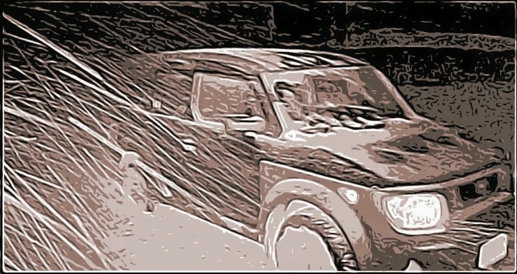 Soon we were on our way and headed home. I vowed to never leave the house again. We could no longer see to drive ... and now this? We were stuck at the top of a hill in extreme whiteout conditions. I waited for the wind to push our car off the road and braced for the impact.