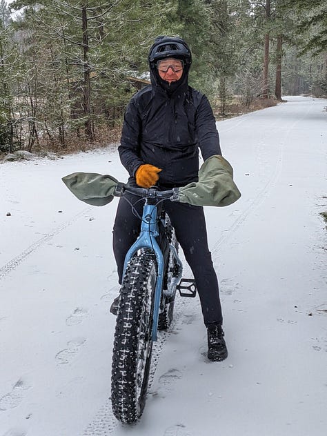 I rode because I always do. Climbing felt like the point, so I kept climbing, letting the bike do its quiet magic until even that ran out of options. The snow was deep enough to erase rules. Fallen trees turned polite, hills turned stubborn, legs eventually voted no. That was fine. I had the ride I needed. On the way down, the familiar downhill lines showed up like old friends who never ask questions.