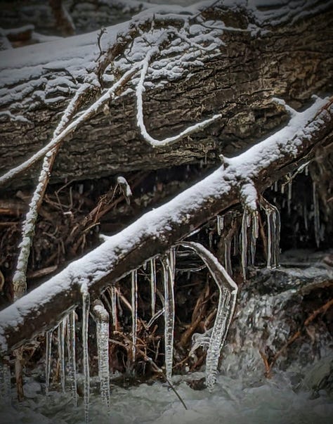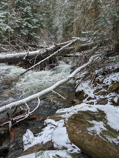 We met back up in the parking lot, tired in different ways. Her photos were beautiful. Ice on branches, water threading through snow, details I missed while chasing elevation. I wished, briefly, that I had taken that walk. Not enough to undo the ride, just enough to notice the trade-offs; both ways still lead back to the same place.