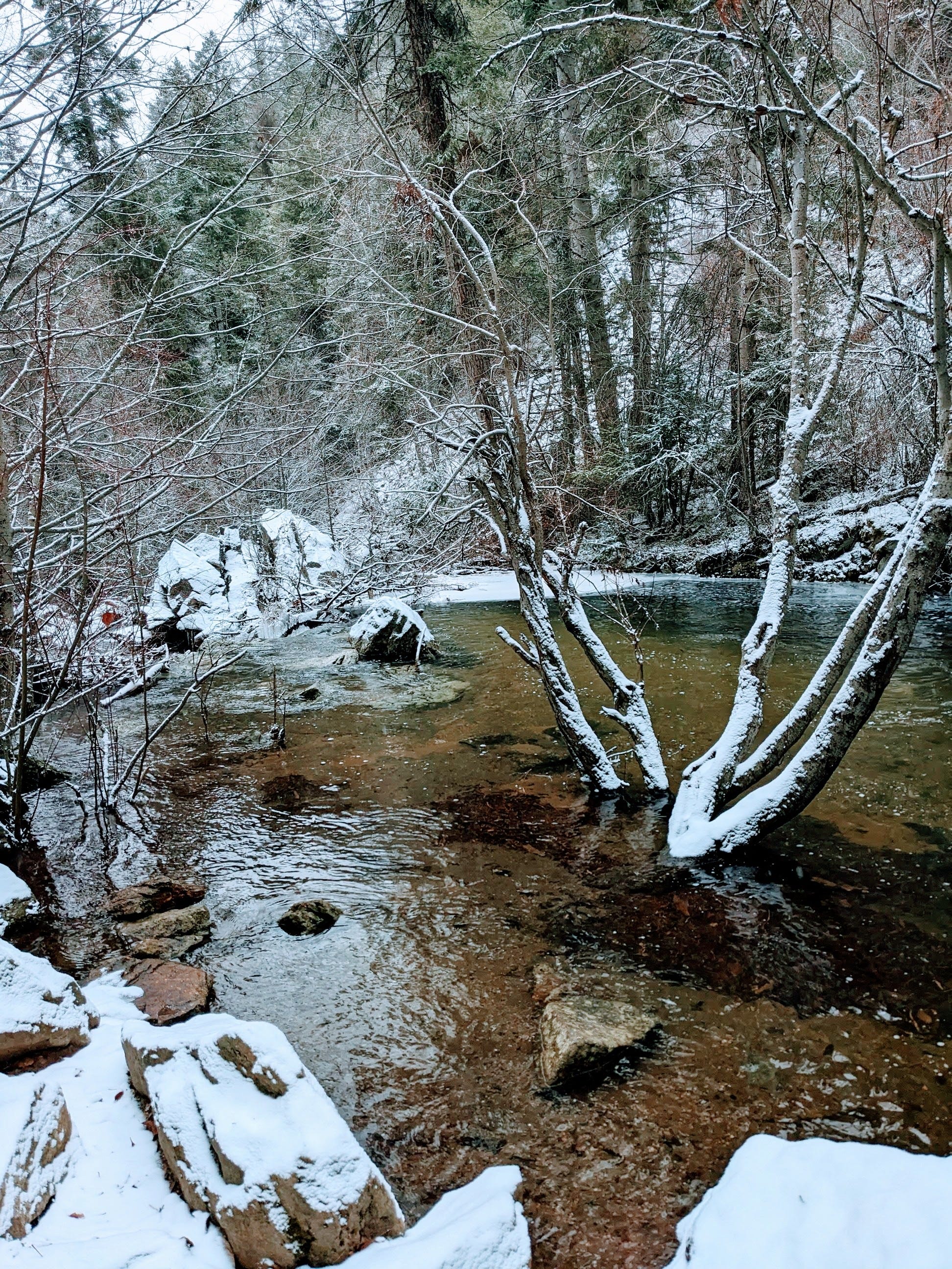 The harder part was not the snow or the climbing. It was the quiet mismatch that sits there sometimes. I want motion, effort, distance, the full commitment to being worked over by a day. Snuggles wanted a creek, a slow walk, a camera, space to look. Neither of us is wrong. Our neurologies just point in different directions. I love my alone time, but I want shared awe too, the kind that smells like cold air and burning legs.