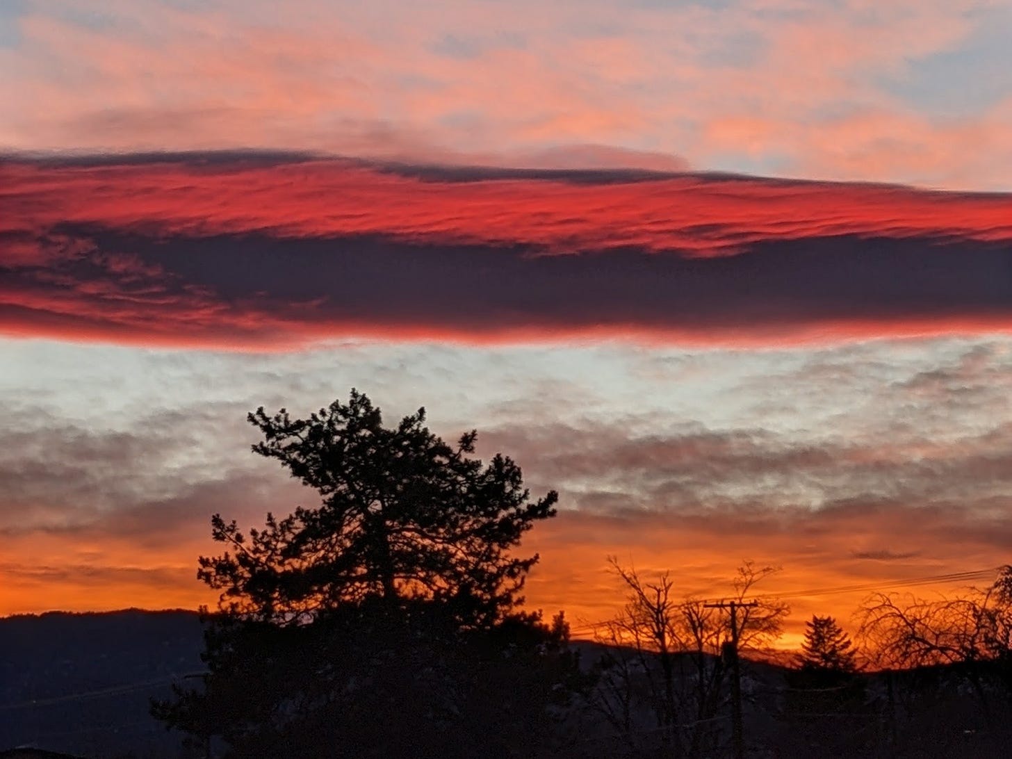 Now it’s March, the birthday is April 3rd, and 206 is the number on the scale. The gap between here and 195, or 185, depending on the day you ask, is six weeks of salt water and arugula smoothies and one meal and willpower and sunsets so absurd they almost feel like a bribe from the universe. That Missoula sky last week went full crimson and orange, the kind that makes you stop pedaling and just stare. It doesn’t solve anything. But it interrupts the arithmetic for a minute.