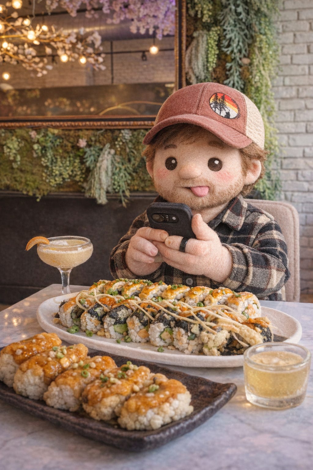The thing about being a plushie is that nobody asks if you want to go outside. You just get picked up, tucked under an arm, and suddenly you’re downtown Missoula in March, hoping your seams hold. But Cuds and I had a date at SakeTome, and some things are worth the logistics.