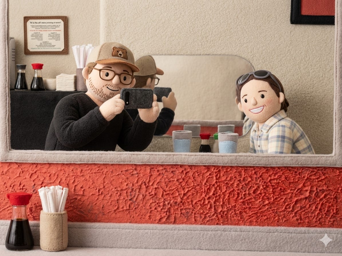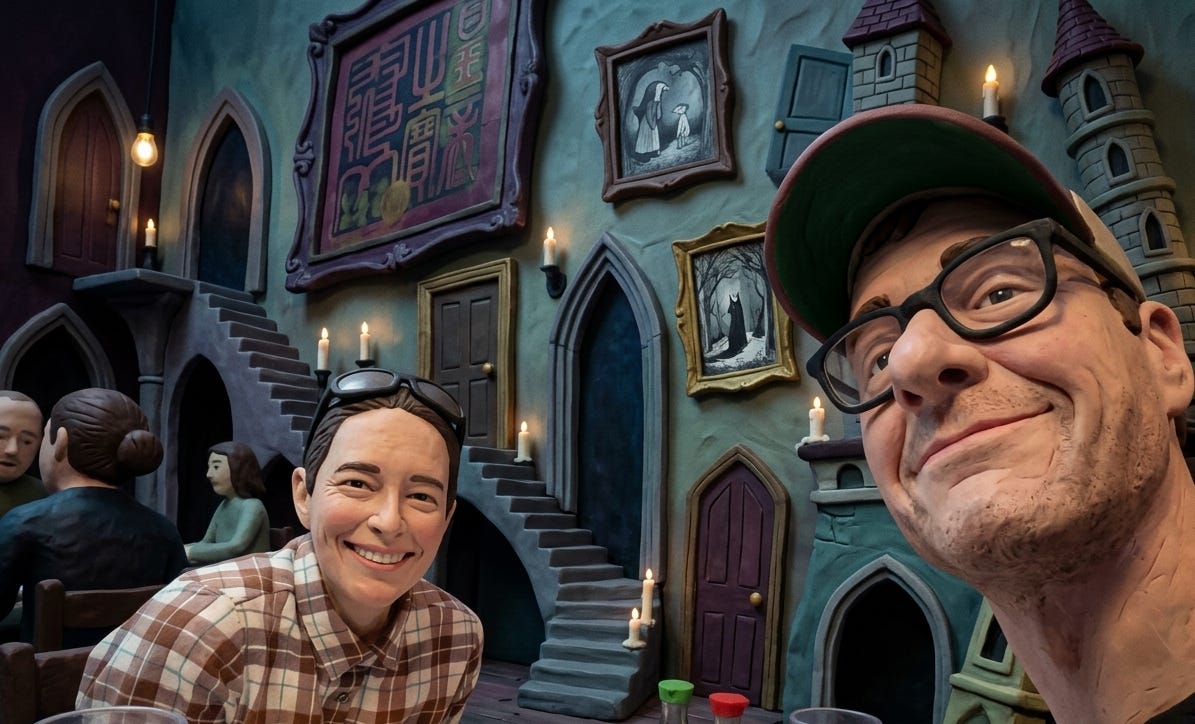 Then the over-calibration. The flux capacitor, that smug little component, dumped them into a world where everything was soft and slightly unfinished. Plasticine trees. Clay people. Mo’s hands were smooth and pinkish and perfect in a deeply unsettling way. They had dinner anyway, soy sauce bottles being the only sharp objects in the zip code, surrounded by tiny clay strangers who seemed unbothered.